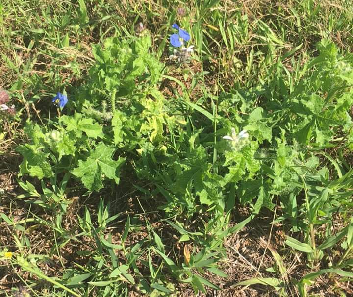 in Texas, little purple/yellow flowers, small white flowers as well, leaves appear to be fuzzy