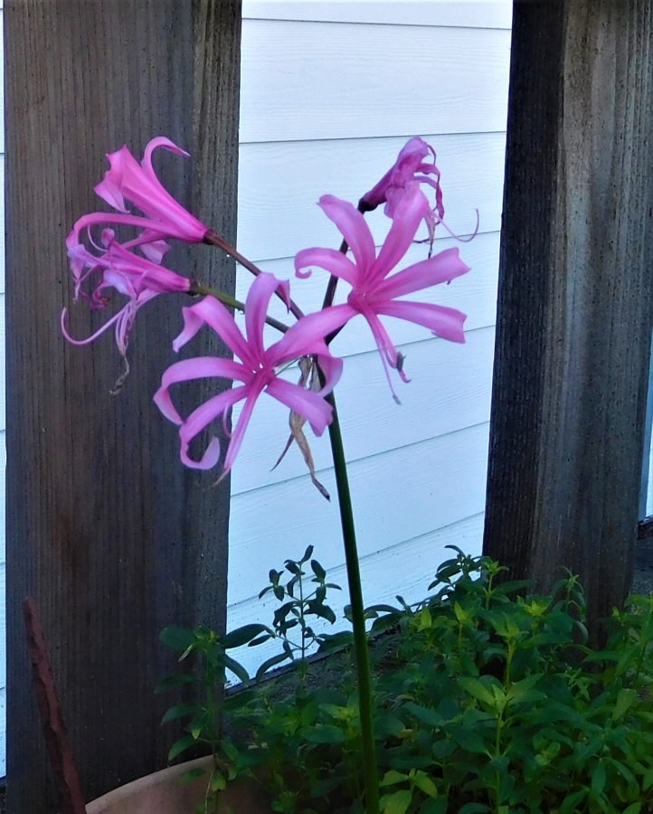 Maybe Bowden lily (Nerine bowdenii) or one of its cultivars. Check it out and see if you have a match. Best wishes! https://en.wikipedia.org/wiki/Nerine_bowdenii
