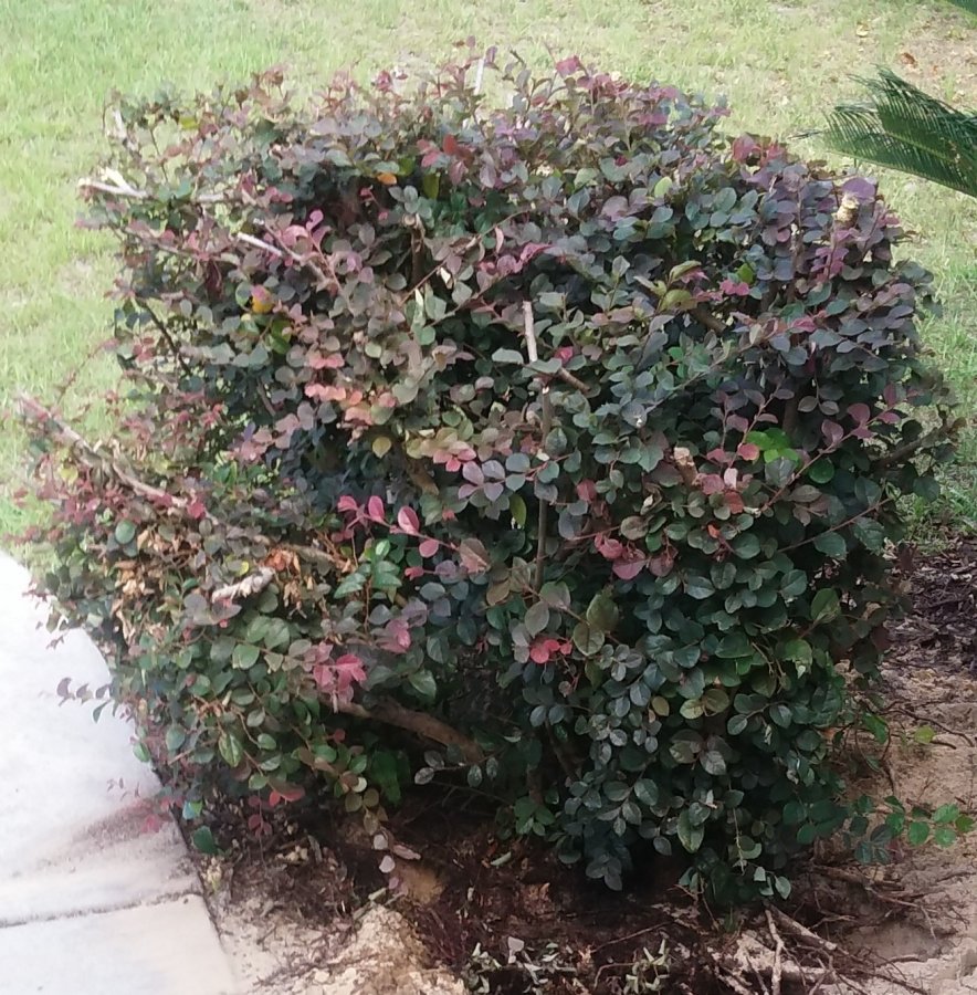I’d like to know the name of this shrub; planted close to a house we just purchased. We found sprouts of this plant cropping up on the other side of the sidewalk, which means the root spreads wide. These roots may be going under the house’s foundation.