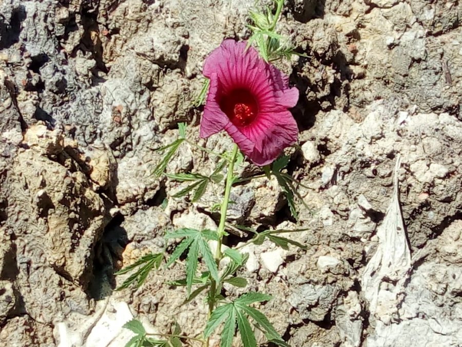Maybe Brown Indian hemp/Kenaf (Hibiscus cannabinus) (?). Check out the included link below for more information. Best wishes! https://davesgarden.com/guides/pf/go/60020/