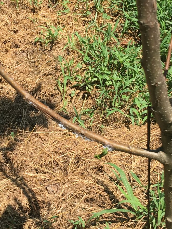 I can’t see clearly, but check out link below for wooly apple aphids (Eriosoma lanigerum) and see if you have a match. Best wishes! http://www.home-orchard-apple-trees.com/apple-aphids.html