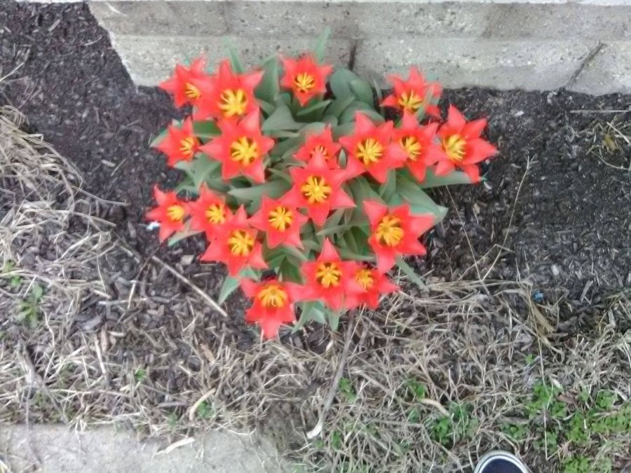 Details of flowers & leaves are not close enough to be certain. I could only speculate that your beautiful flowers might be a tulip cultivar ‘Toronto’ from the Tulipa greigii group? If this isn’t that, make new post with closeup sideview photos of leaves, stems, and flowers. Best wishes! http://davesgarden.com/guides/pf/showimage/156329/