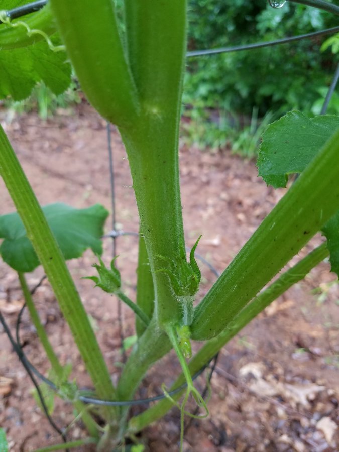 Appreciate these additional photos Brent! The tendrils with big leaves, and with those flower buds I’m wondering if yours is in the Cucurbita genus (?). Its species include cultivars known as squash, winter squash, pumkin, etc…Since this is coming up by itself, you will need the fruits to narrow down the ID. For now check out these included links for some of the species images & information of this genus. Best wishes! Link to species C. maxima’s images with male flower. Click on image to enlarge. https://commons.wikimedia.org/wiki/File:Cucurbita_maxima_%22zapallo_plomo%22_(Costanzi_temp2)_nudo_zarcillo_ramificaci%C3%B3n_tallo_tricomas_yema_floral_masculina_florM01.JPG