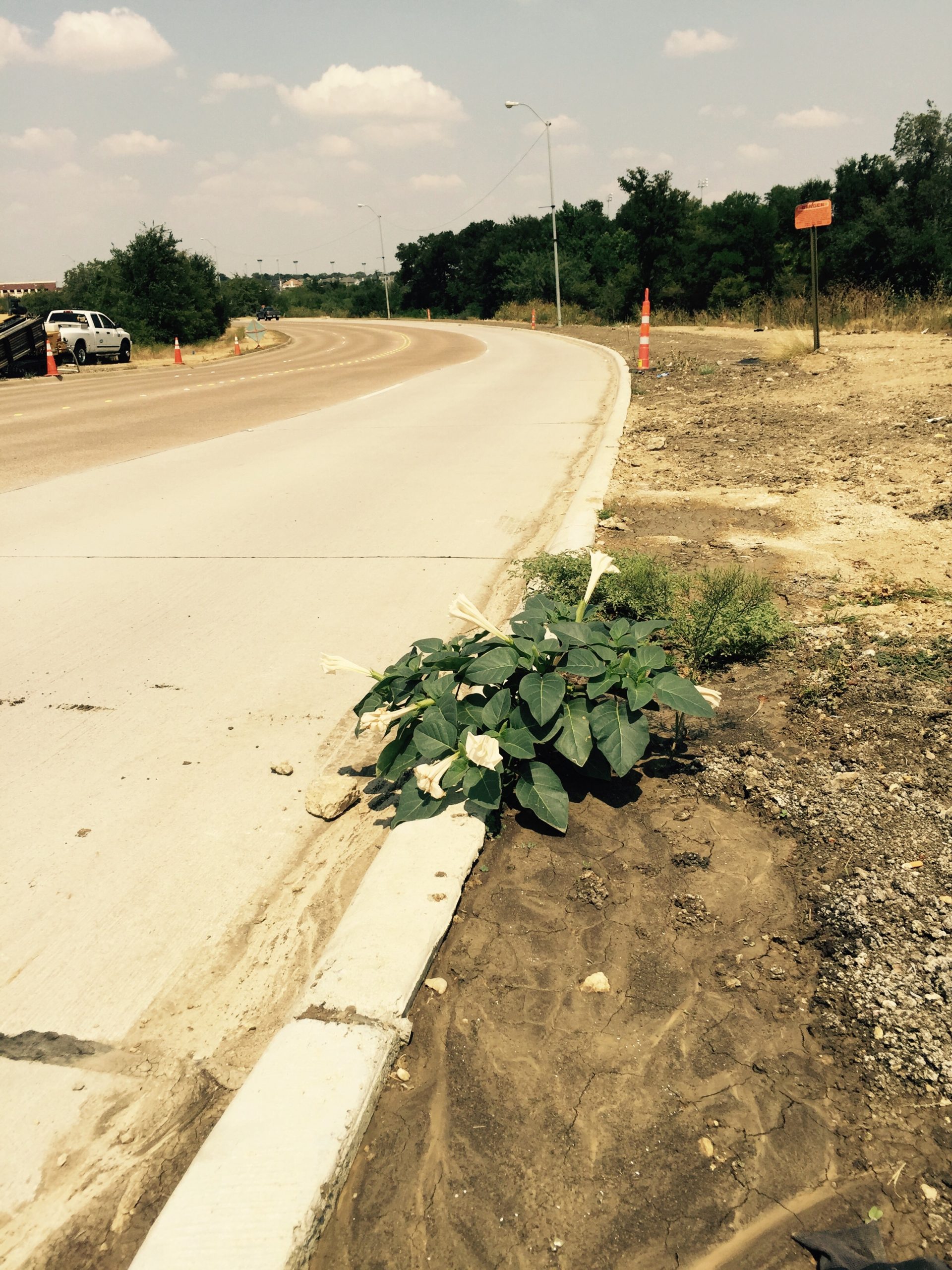 I was driving by a new roadside project and saw this beautiful green trumpet flower looking plant growing right near the curb. It looked lonely out there, so I decided to try and uproot it to take it home. It was growing in mushy recently upturned clay soil in direct sunlight. There was a construction guy near by… He helped me get it out of the ground. I broke the root, thought I killed it. Brought it home, put it in water, root stimulator and some clay soil I collected, and it perked up.