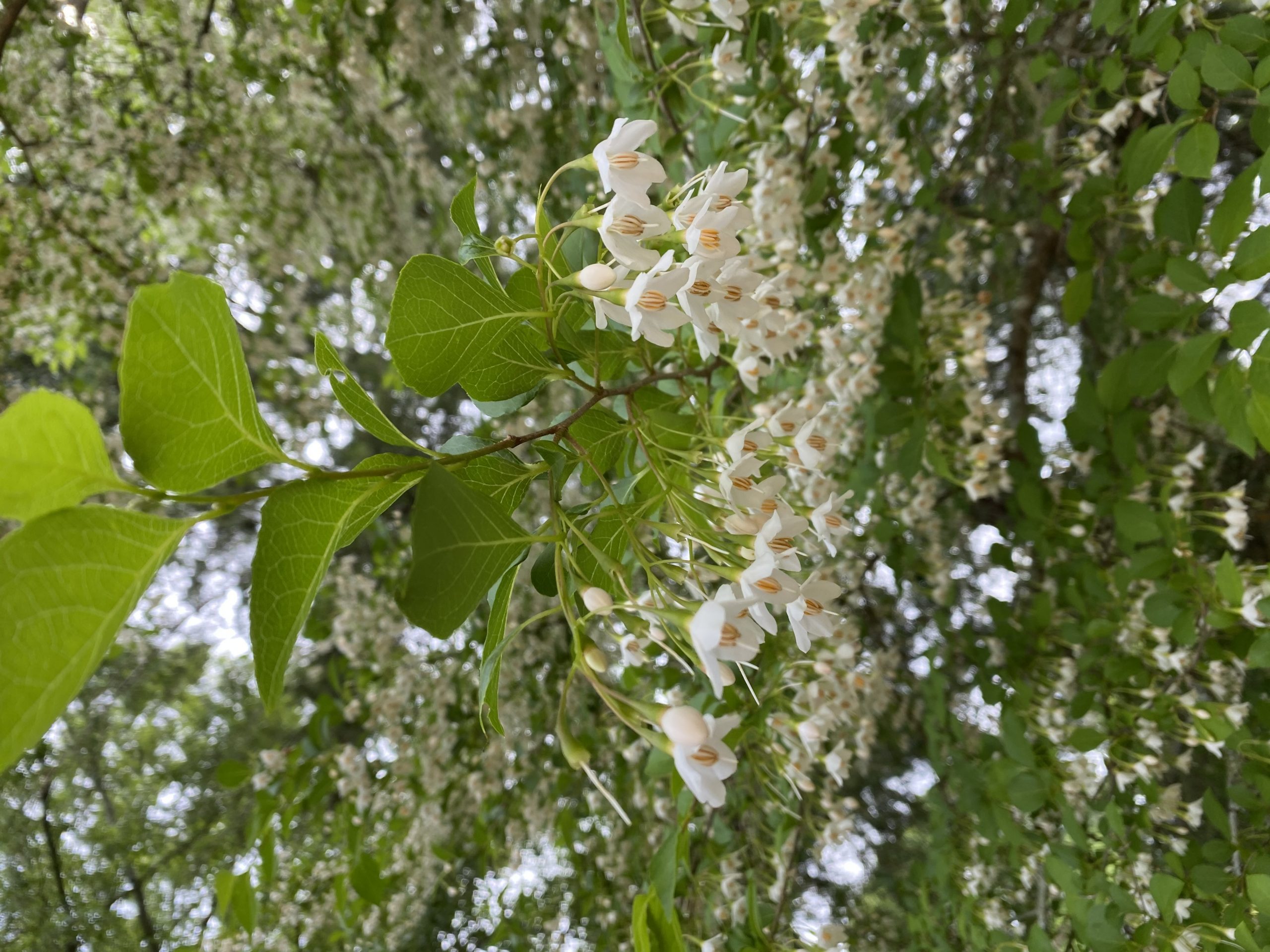Very large tree with a gazillion of these beautiful little teardrop blossoms.