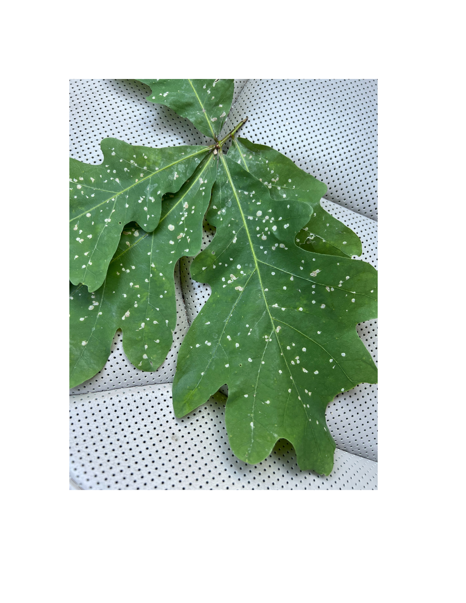 These spots are on all the leaves of the oak trees on my property. (I think this is an oak leaf). I don’t notice them on any other trees. 🙁