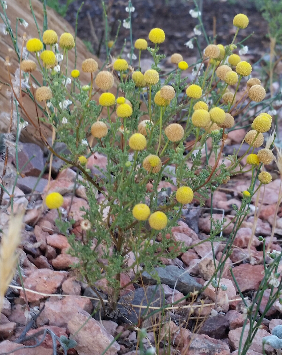 Located just north of Phoenix in the foothills, approx 2200 feet. Takes over any patch of dirt without a plant aleady growing there. Grows to a height under 12 inches. Anytime I go near it, I swell up like a balloon and am covered in hives. A patch test revealed I’m allergic to parthenolide (Tanacetum parthenium) so I’m thinking this might be related.
