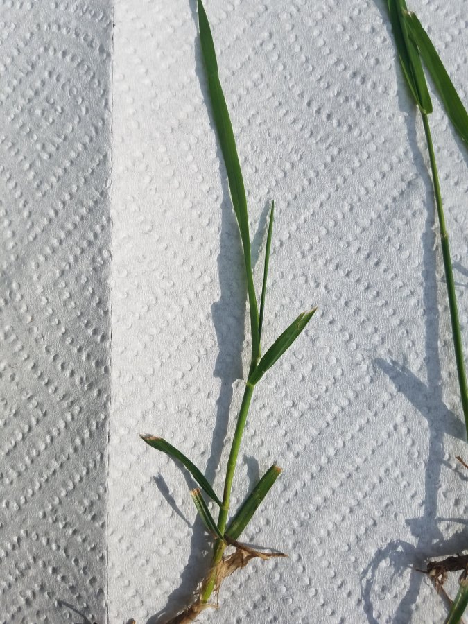 I canÕt quite tell without a seedhead If it is fescue, mow at 2 inches or lower and fertilize the Bermuda regularly