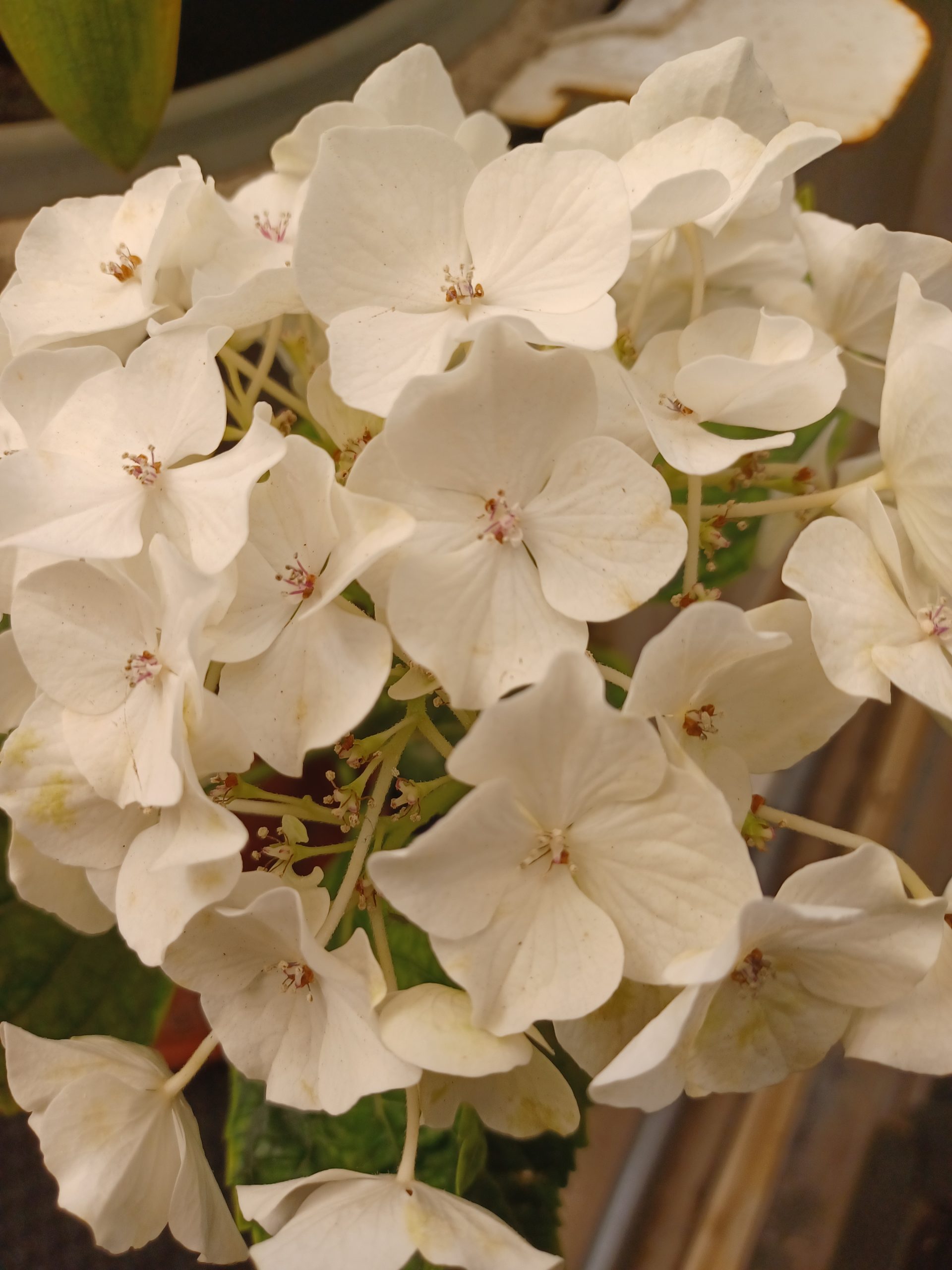 It is a white hydrangea that we would like to know the variety. Unfortunately, we cannot get any more pictures of it doing well, so these were the best we could get.