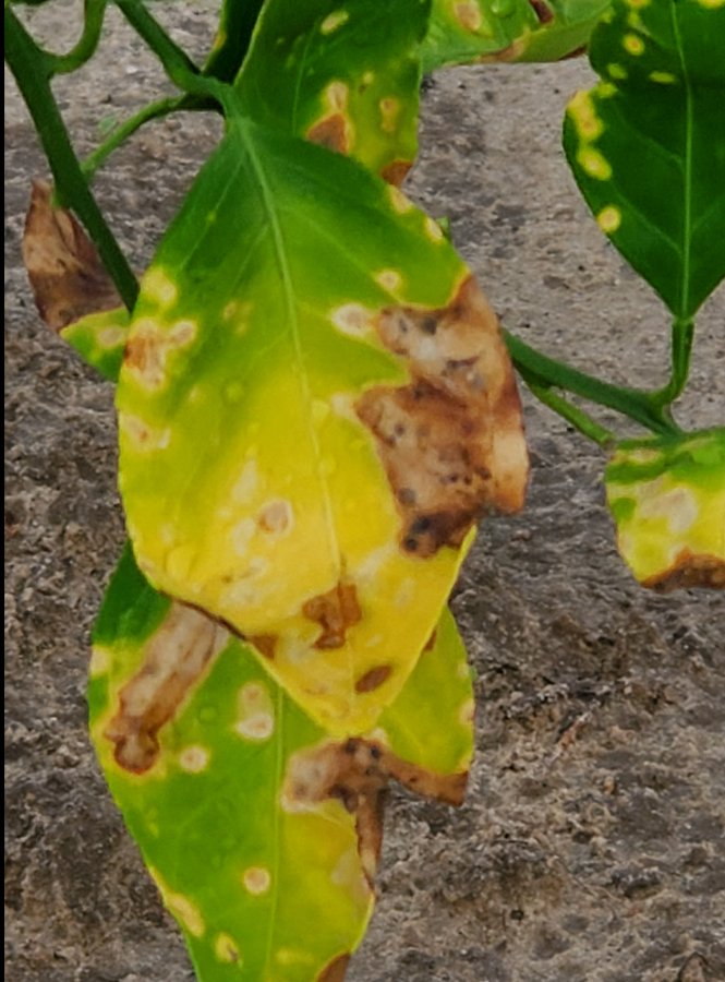 Not having the plant in person, I’m wondering if this might be a type citrus canker (Xanthomonas axonopodis)? Possible Xanthomonas citri pv. citri? Again I’m only speculating. Best you contact the local Agriculture Extension Service for further guidance. Check out the included link below for more information and a list of other citrus diseases. Best wishes! https://idtools.org/id/citrus/diseases/factsheet.php?name=Citrus%20canker