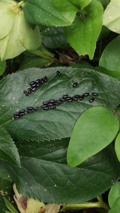 These are on a leaf in a hydrangea bed. Are they seeds? Hopefully not bugs!