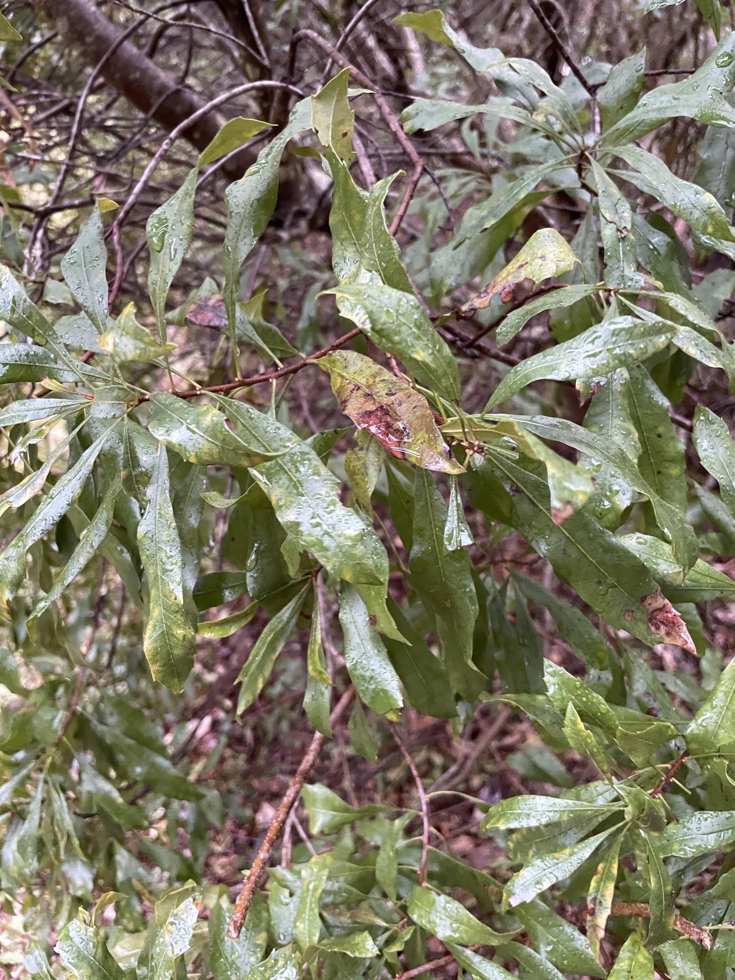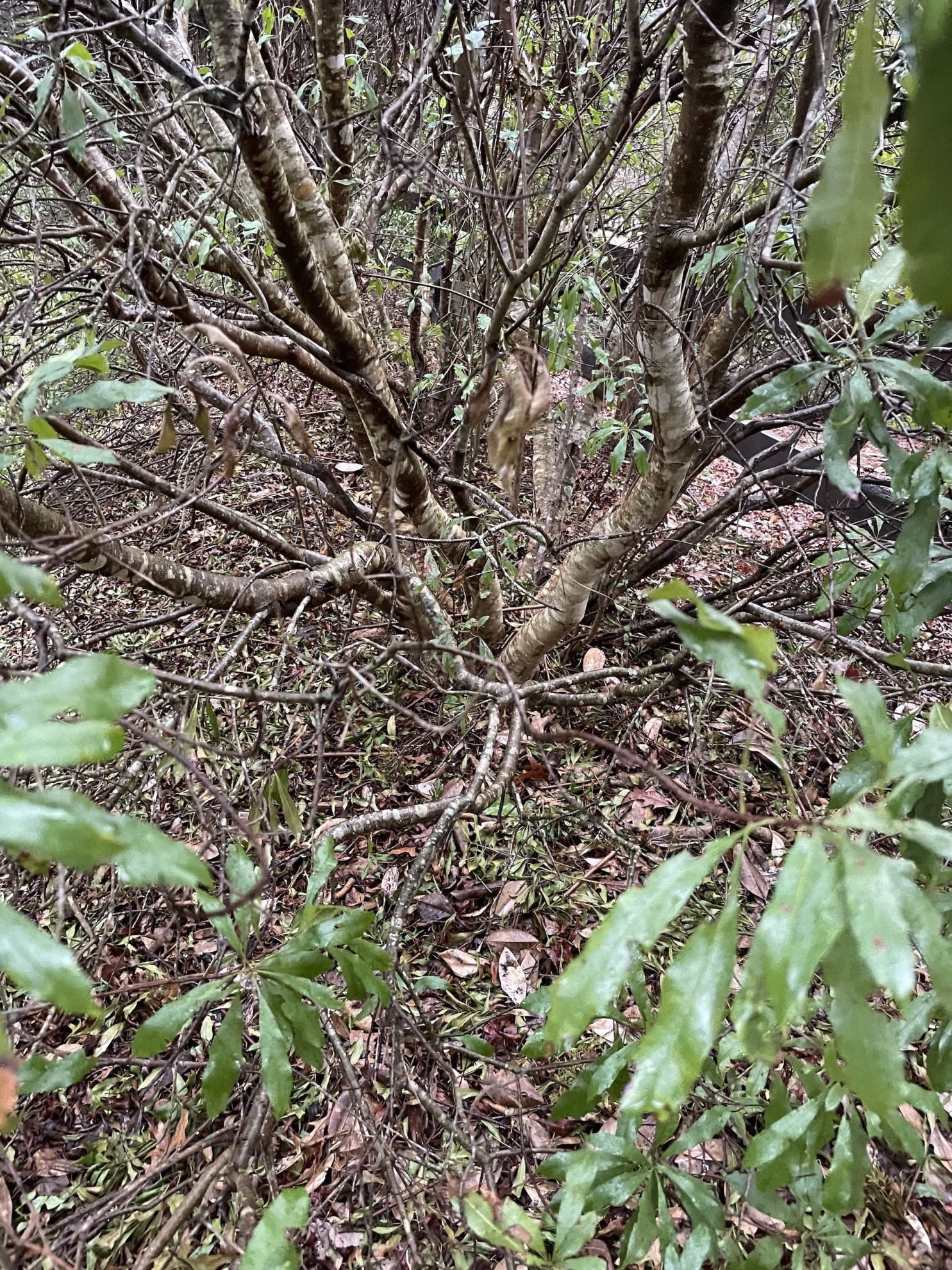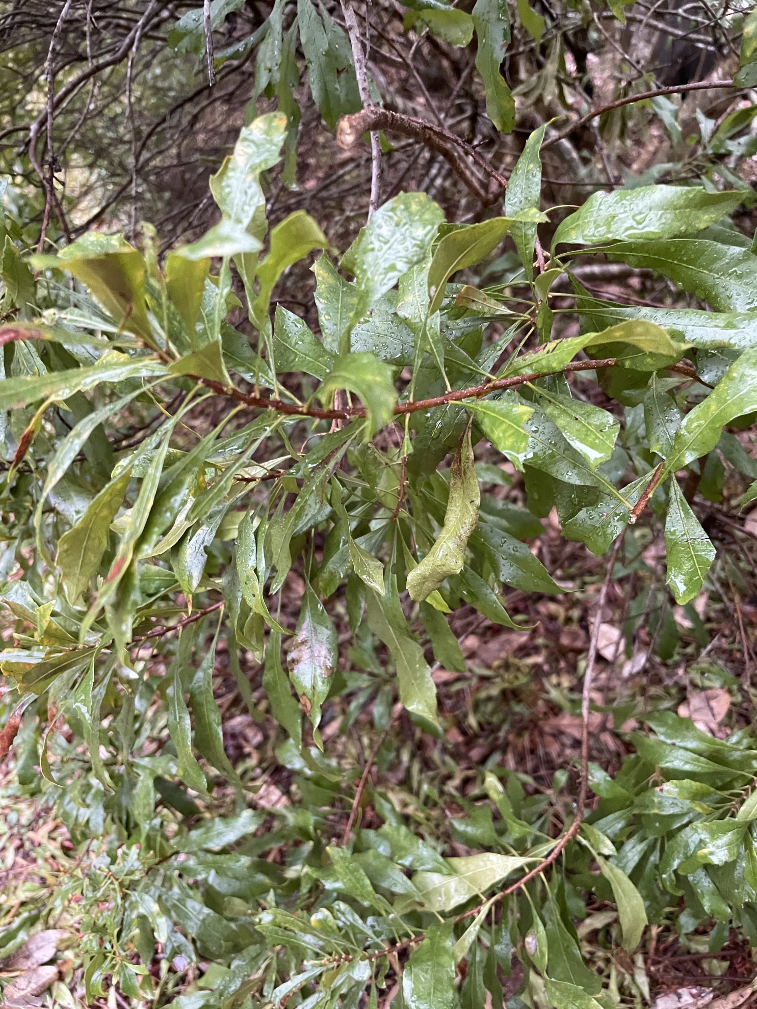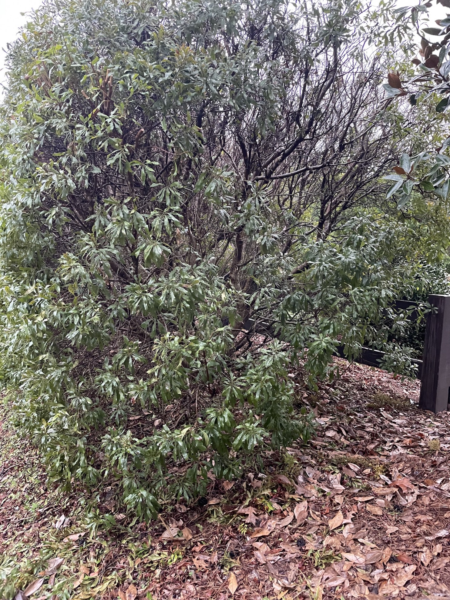 Maybe wax myrtle (Morella cerifera syn.Myrica cerifera)? Copy & paste the included link below and see if you have a match. It appears your plant is about to bloom, flowers can help confirm this suggested ID. Best wishes!