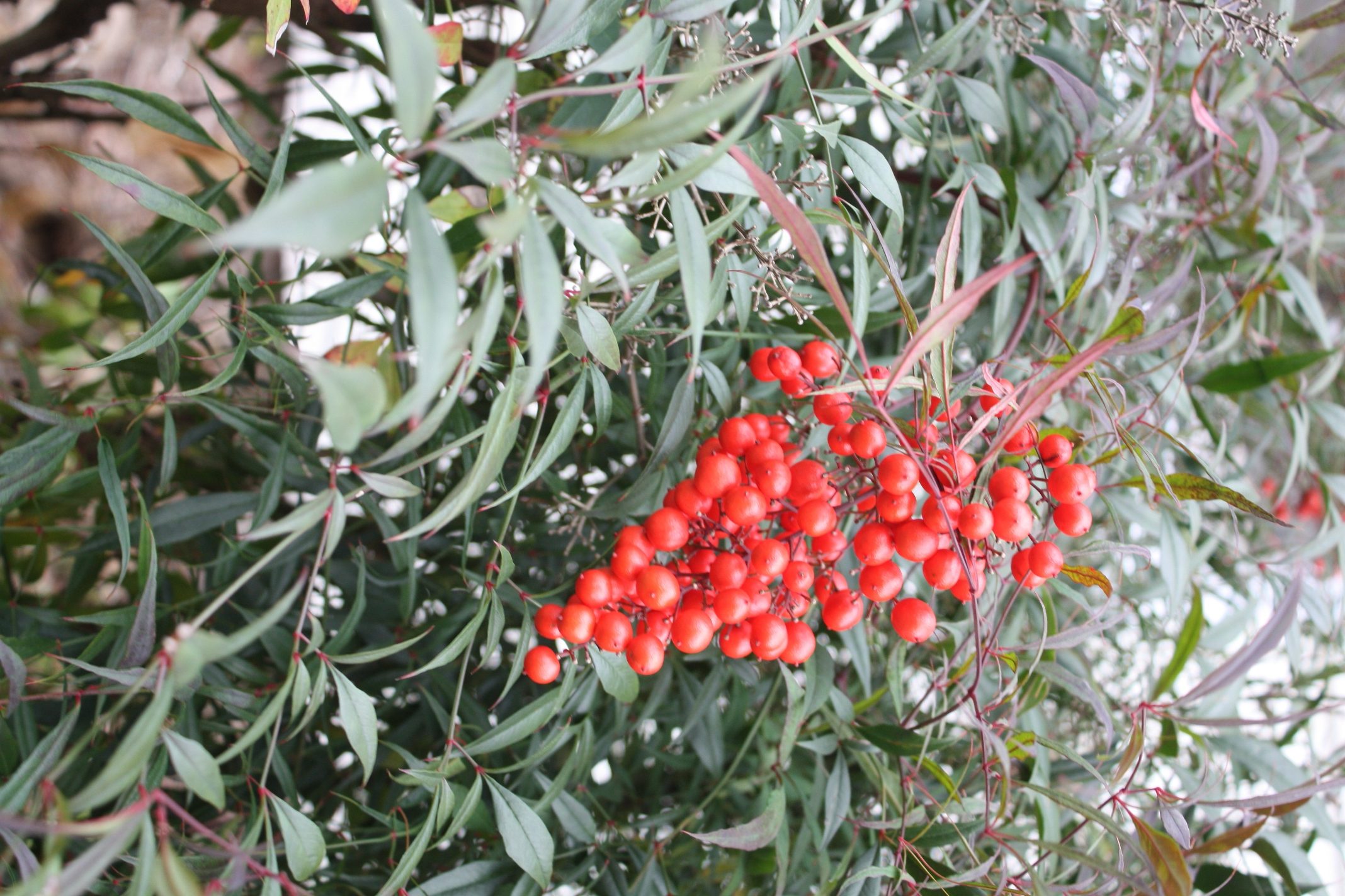 That looks like Nandina to me. Sorry I can’t provide a link from my phone but if you search it yourself, I think you’ll find it matches.