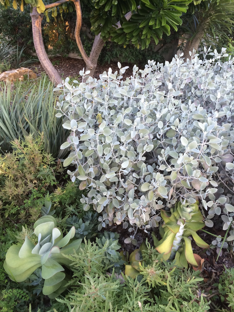 Can you tell me what the silver colored plant is and also the plant below at the bottom of the picture?