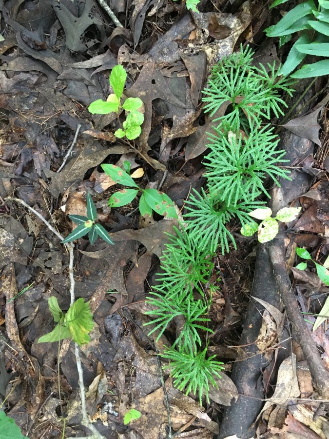 Lots of common names, one of them is “ground pine”. It is one species of club moss.