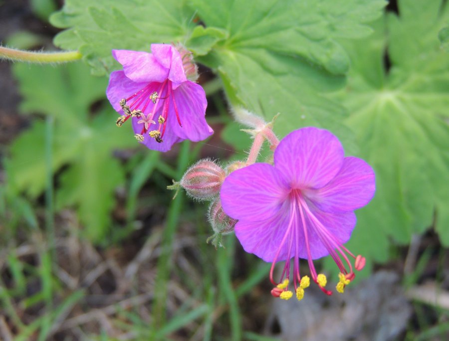 Similar to Geraniums, but has long filaments and anthers