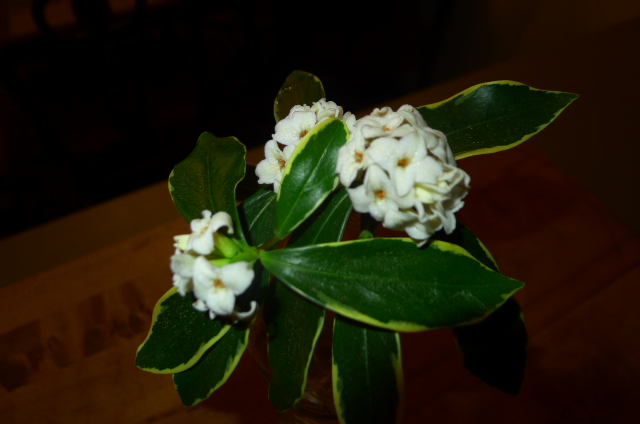This was a shrub about 3 feet tall and smelled great. The picture was taken on Feb 26 and the plant was blooming. Variegated leaves. Smells kind of like a Tea Olive but with some citrus/lemon scent as well