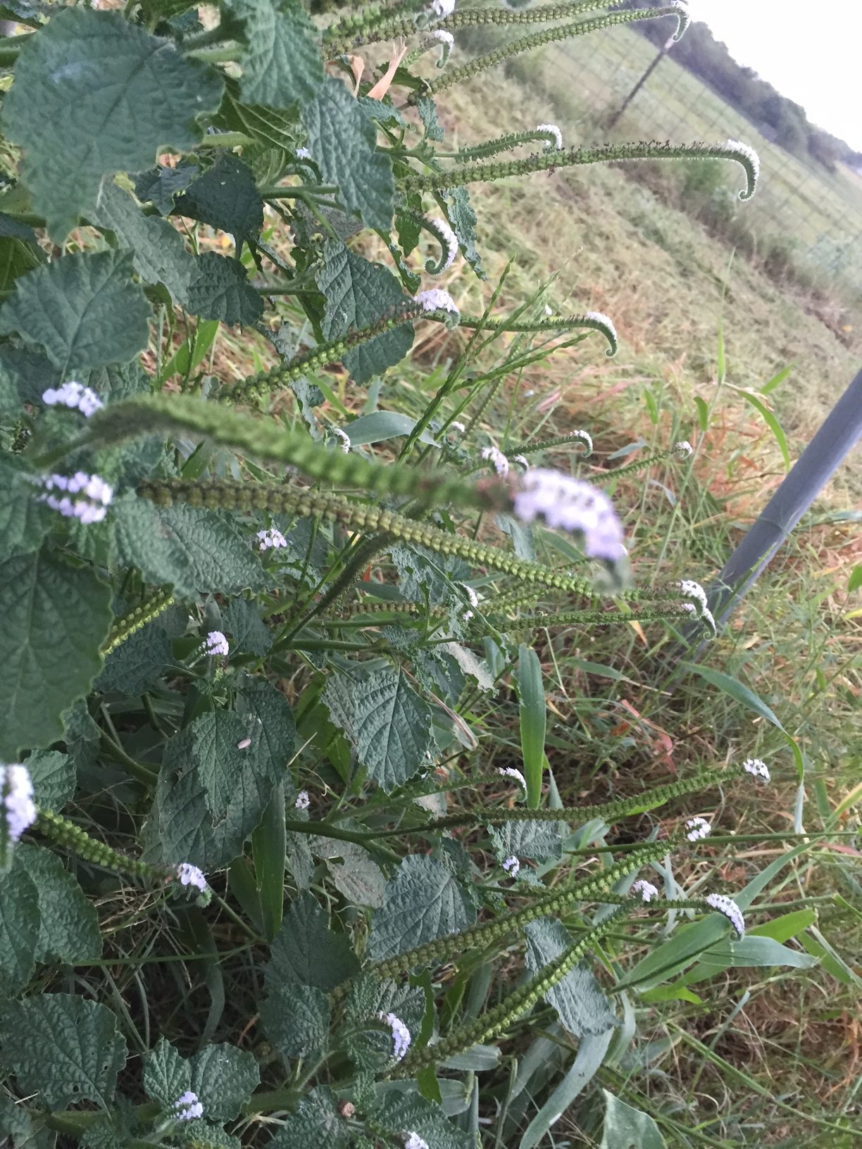 Maybe a species of Heliotropium. This might be Indian heliotrope (Heliotropium indicum).