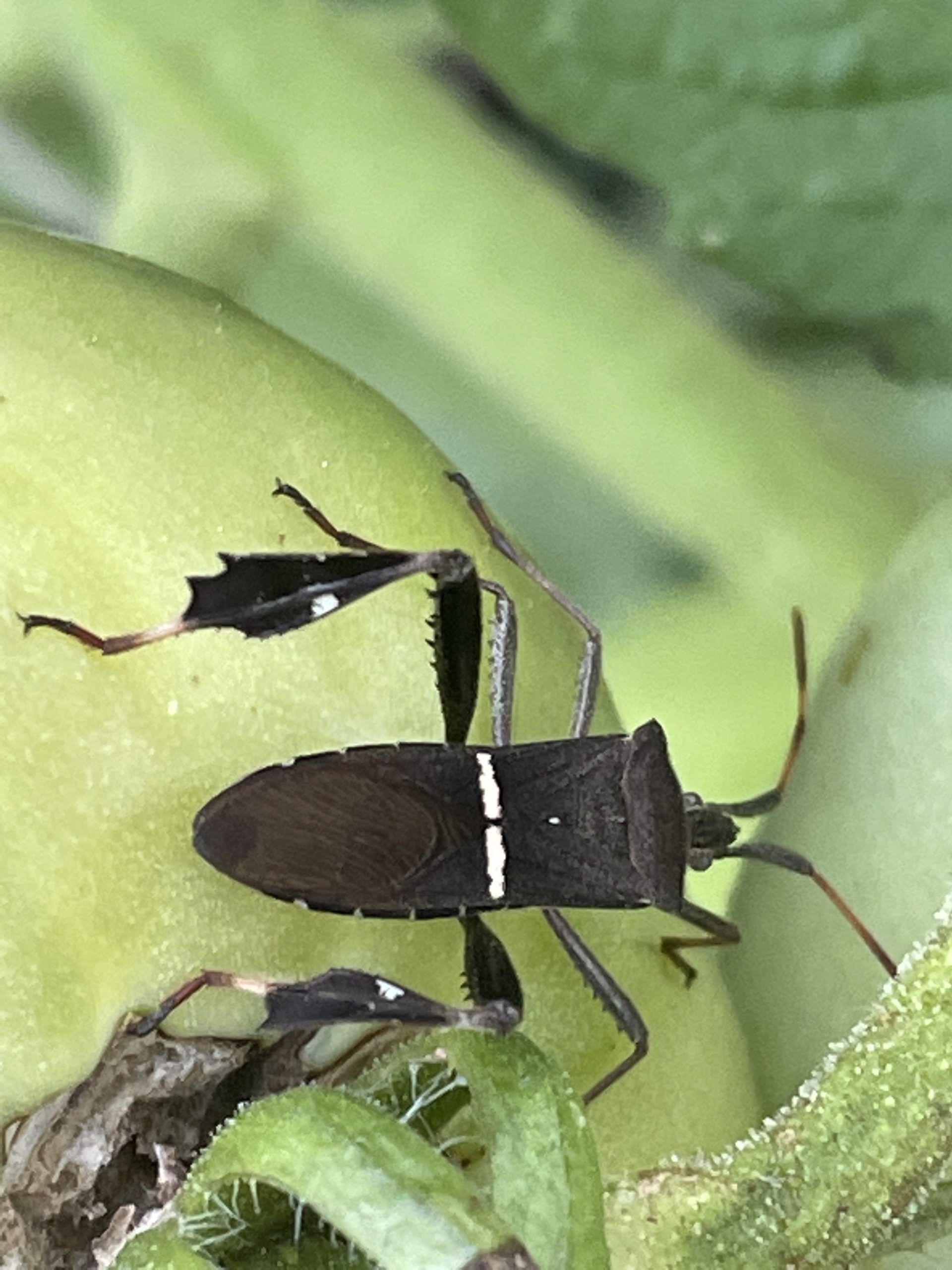 I am seeing this insect on my tomatoes. They were present last year as well. I think they are using their Proboscidea to poke into the tomatoes. I try to catch and kill them but have not been successful.