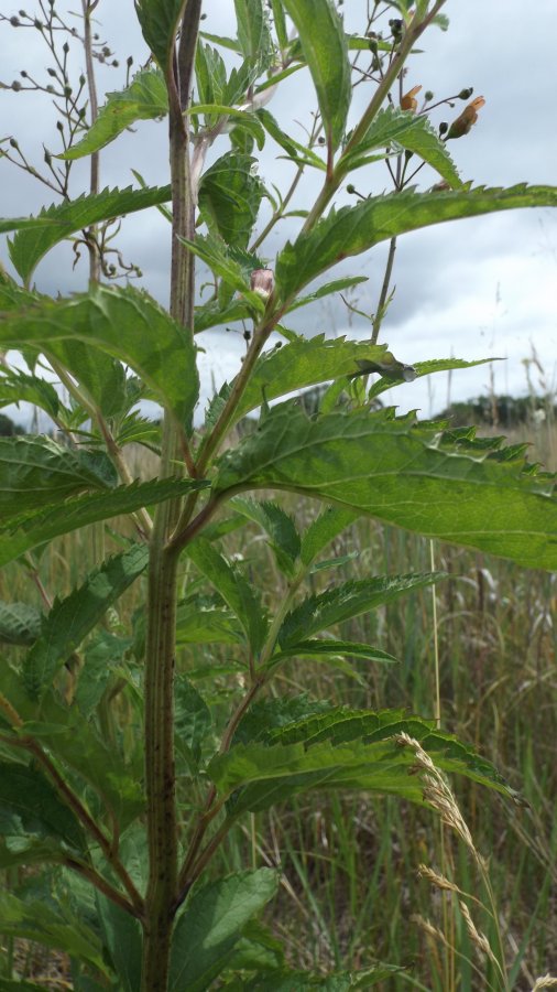 Looks like a species in the Figwort genus (Scrophularia). I’m not certain of which species yours is, possibly the lance-leaf figwort (Scrophularia lanceolata). Check out the genus and see if you have a match. The included link below has more information. Click on images to enlarge. Best wishes! http://wisflora.herbarium.wisc.edu/taxa/index.php?taxon=5011