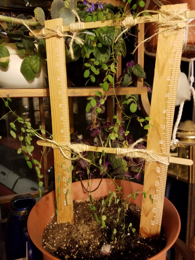 I received some “rainbow” rose seeds from China. I know that you can’t actually grow rainbow roses. But I decided to plant them to see what I’d get. This plant is about two years old. It has never flowered. It is about 20″ tall.