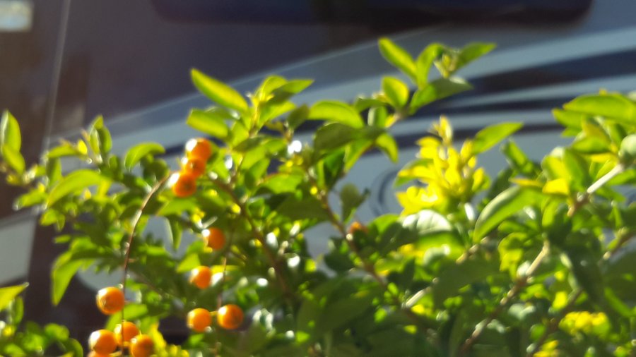 Shrub is app 4′ tall, has some thorns. The yellow/orange berries are the only ones on shrub. We are in Citrus County Florida