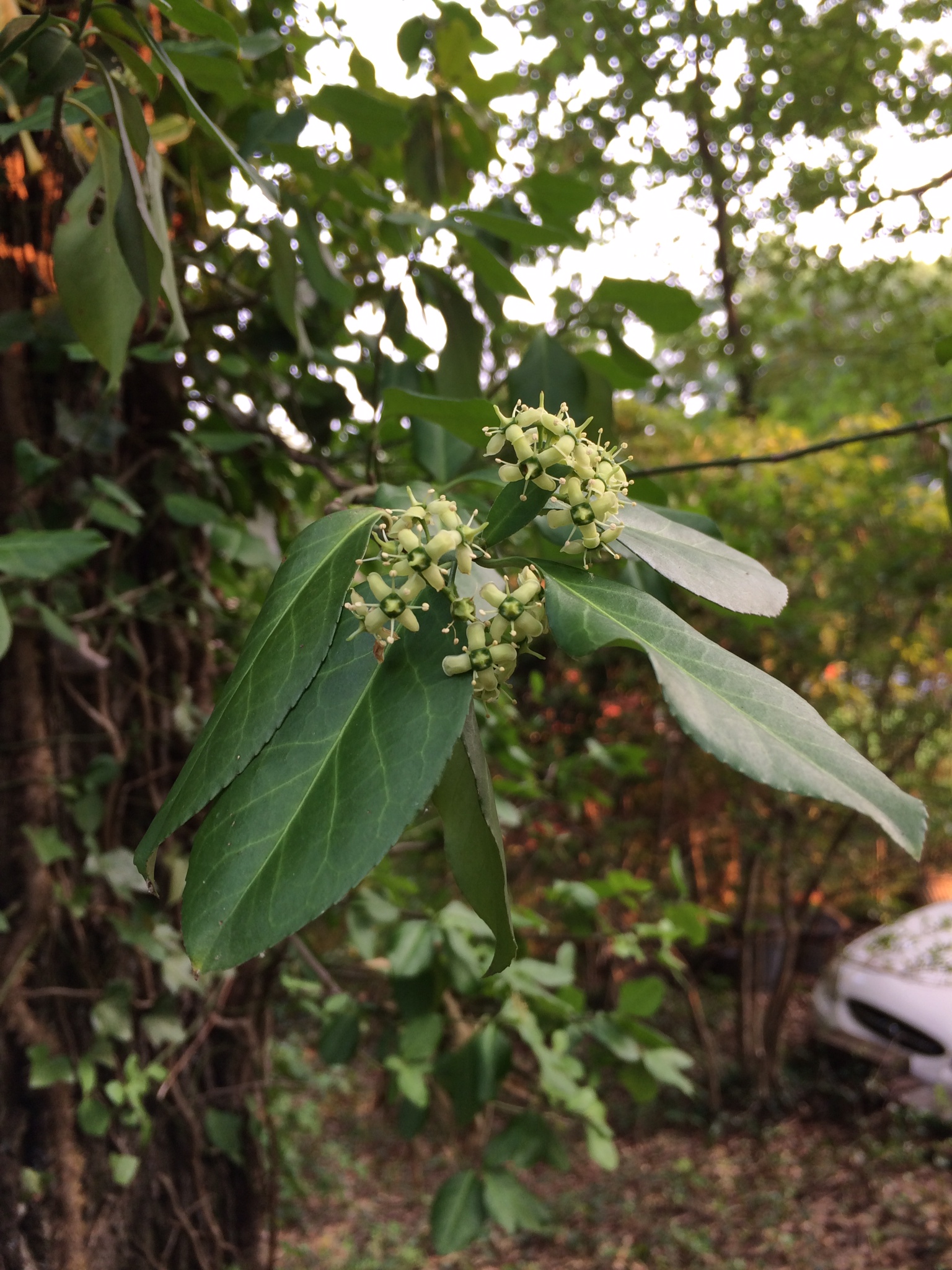 I have not seen this vine except as a photo, but what I do know is that it is growing up a tree in a mostly shady location. The leaves are about 4-5 inches long and it is in Zone 7a. Any ideas?