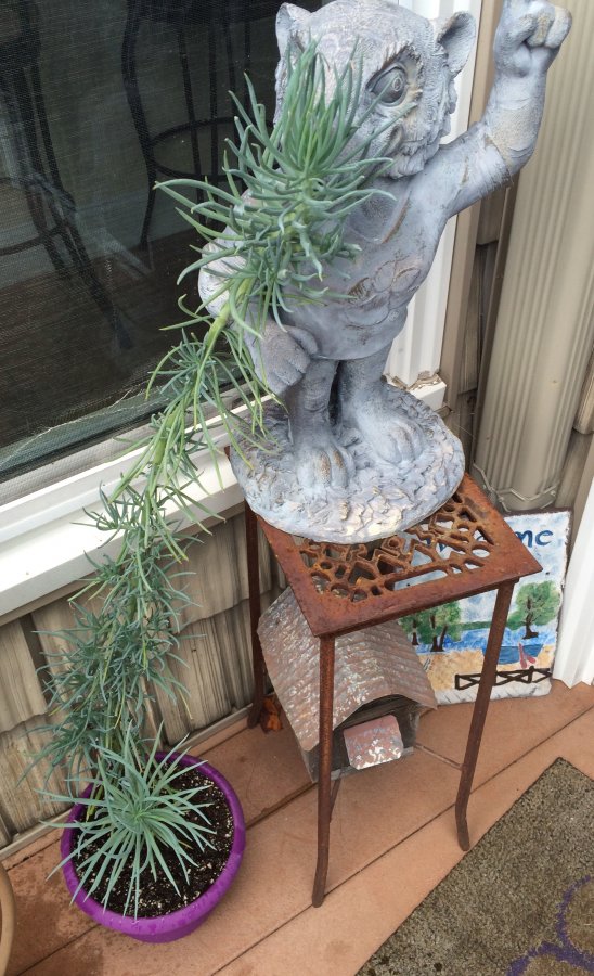 Maybe type of Senecio. I’m guessing only, this might be Senecio talinoides, spp. cylindricus? You know more when it blooms. If it isn’t not that, make new post with flower’s picture. Best wishes! http://plantexplorer.longwoodgardens.org/weboi/oecgi2.exe/INET_ECM_DispPl?NAMENUM=31095