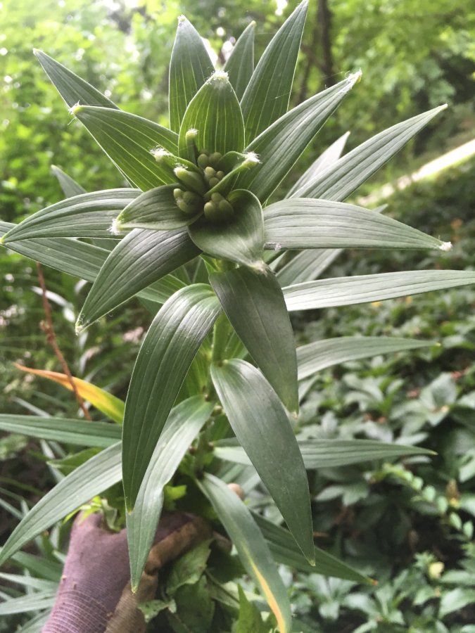 I am not sure which lily this is. Need to wait until it flowers. The round black things are called bulbils. They can be planted like seeds.
