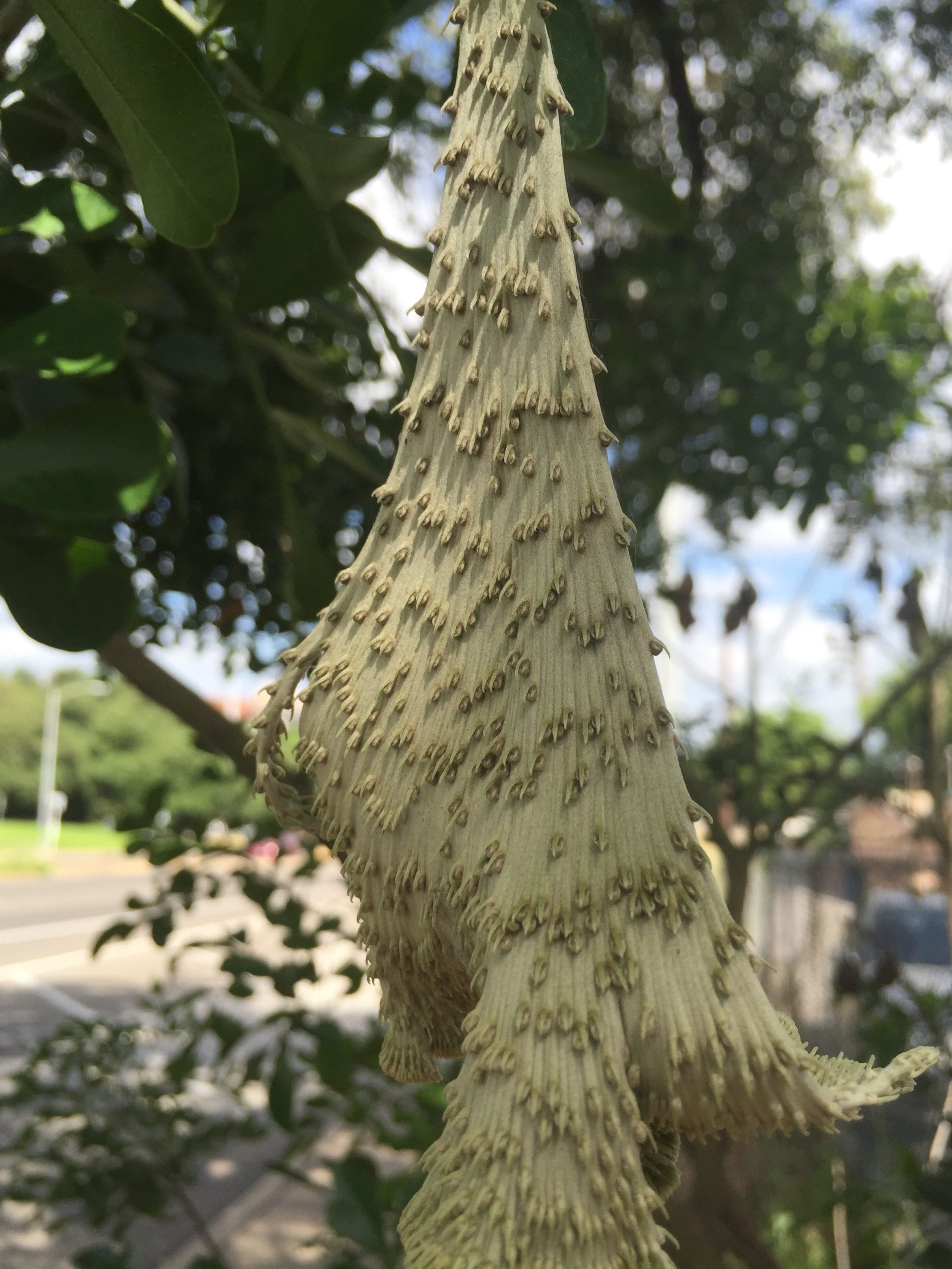 I saw this growth on a Texas Mountain Laurel during a recent walk in my neighborhood. I’ve never seen such a thing, though it looks like it belongs on the tree/shrub. It is somewhat similar to the stalks left behind when flowers drop off, and resembles a staghorn fern a bit. It’s about five or six inches long and maybe three inches at its widest point.