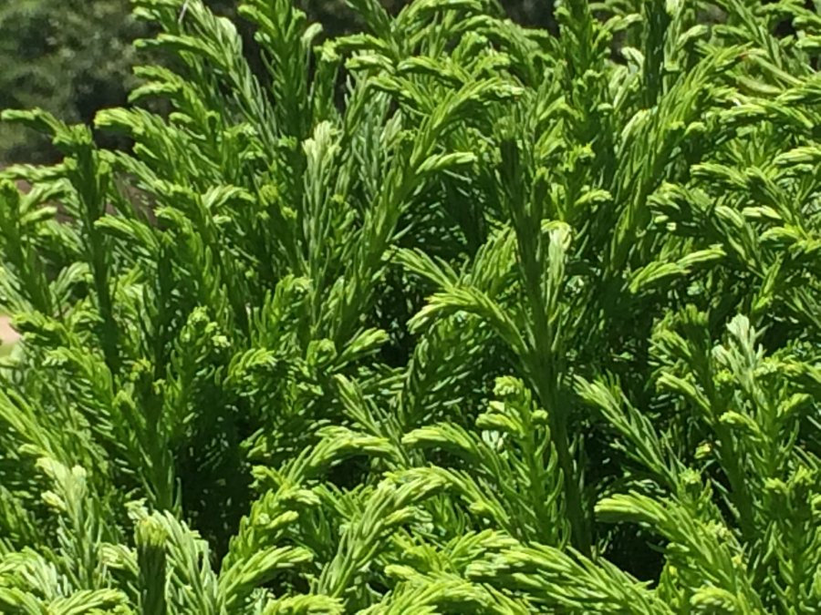 Shrubs in full sun–part of well-maintained business landscaping, so I don’t know if they have been pruned/trimmed into this shape. Tiny needles are 1/2″ or shorter. Foliage very dense, and clearly an evergreen.