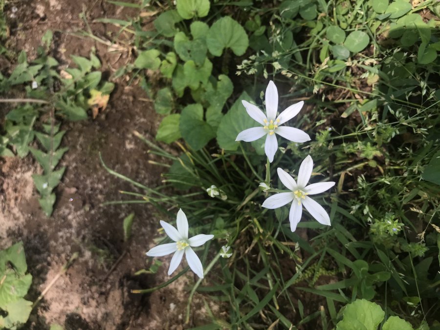 Looks like star of Bethlehem. If it is the leaf will have a white streak at the mid-vein. http://www.walterreeves.com/gardening-q-and-a/star-of-bethlehem-identification/