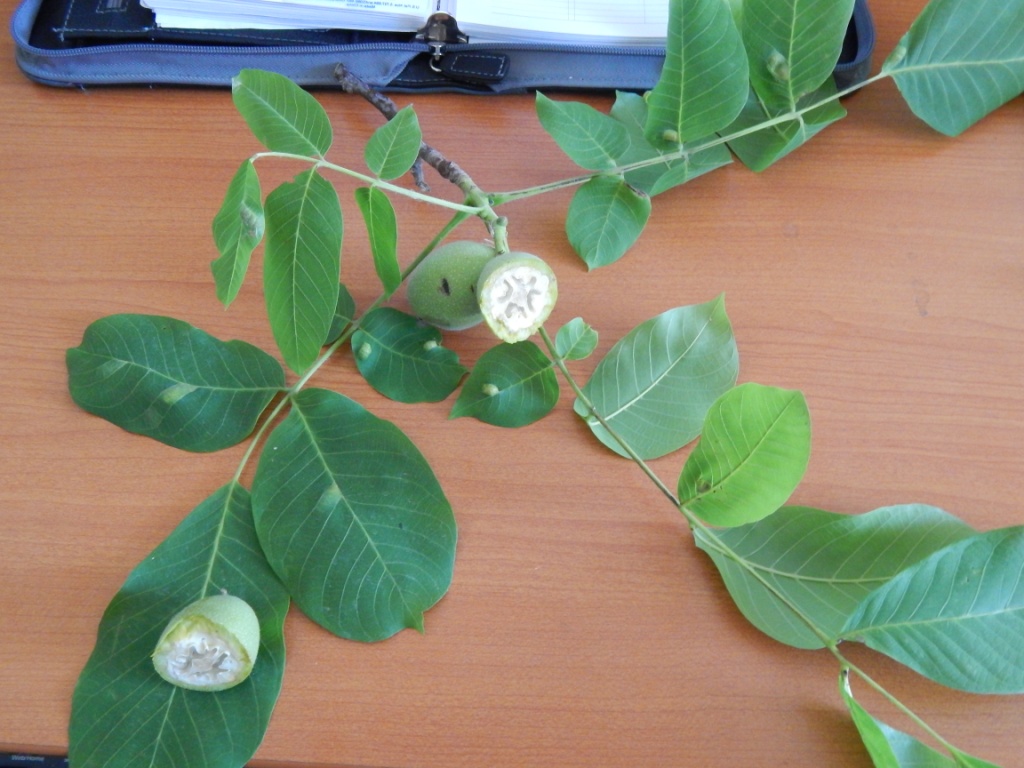 This tree grows in a corner of an alfalfa field and into my backyard. Can’t identify right off the bat. Green fruit has a sharp pungent odor at this stage when cut open.