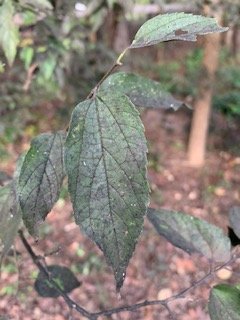 There are several of these trees on a neighboring lot. Each fall the leaves turn black, fall on my property and white flies (I think) fly everywhere. They create the biggest mess. Any suggestions?? Is it a hackberry?