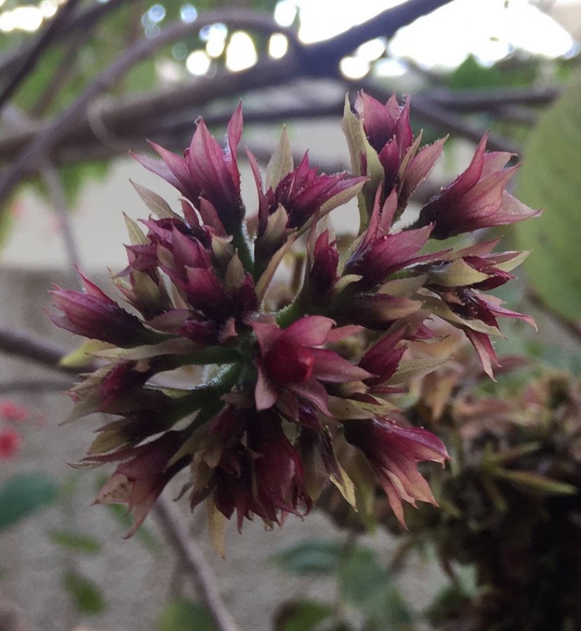 first off I’m sorry the full length shot of the plant is blurry… I live in the UAE and i found this little guy on a tree behind my house. It seems to have made its home in a fork between two branches and appears to be very firmly adherent… did not see any evidence of roots or soil. The overall color is purple/maroonish… not really sure but the close up appears to be what I think is the flower.. its about 13″ in height… my parents don’t know what it is either…