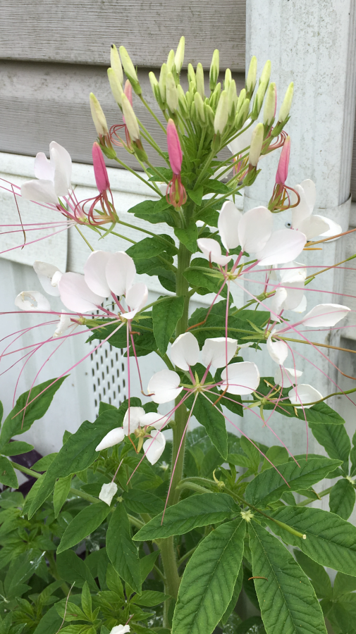 Seems to be an annual that has seed pods apx. 3/4 ” long. Blooms all summer