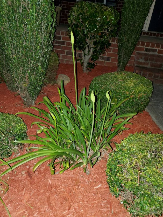 This plant is with the house I just bought. It has dark green leaves and white flowers.
