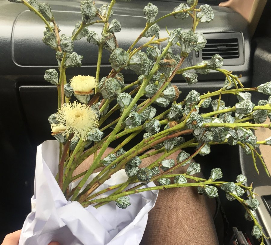 Maybe a type of Eucalyptus flowers? I can’t tell which species this is. The included link below is for the Tasmanian blue gum (Ecalyptus globulus). Best wishes! https://www.anbg.gov.au/emblems/tas.emblem.html
