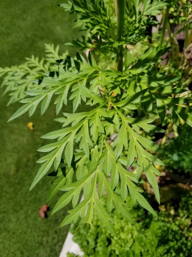Link to ragweed, mugwort, etc… http://www.namethatplant.net/gallery_compari.shtml?compare=leaves%20of%20Mugwort,%20Ragweed%20and%20Spanish%20Needles
