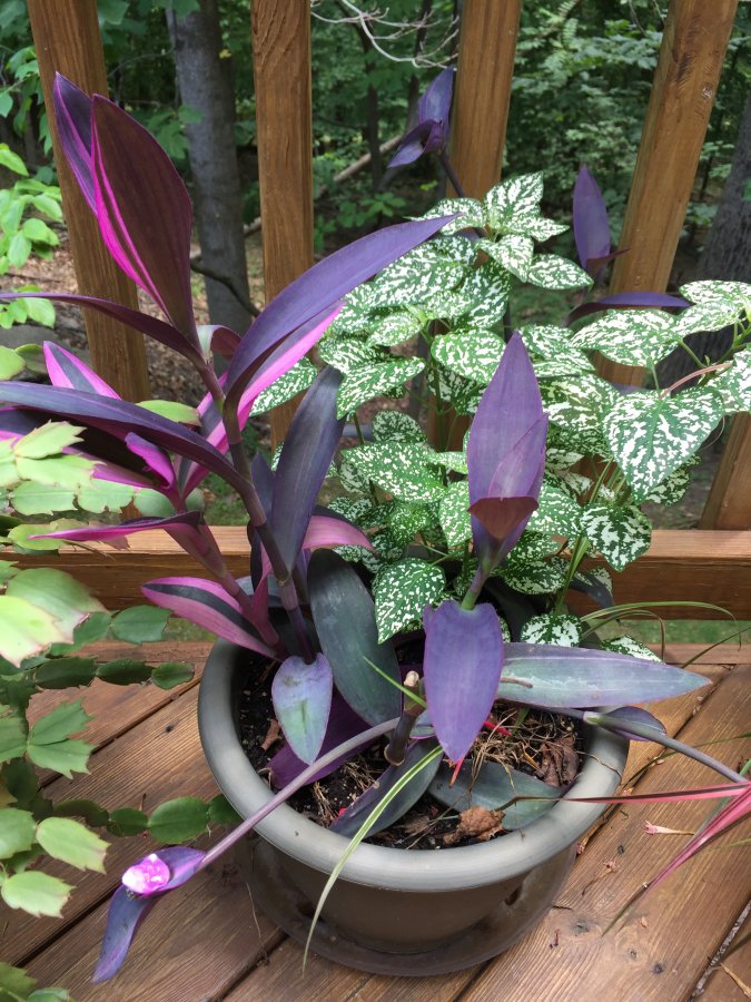 What is the purple plant in this photo, please? Is it a Purple Heart/purple queen? It thrives outdoors in heavy shade.