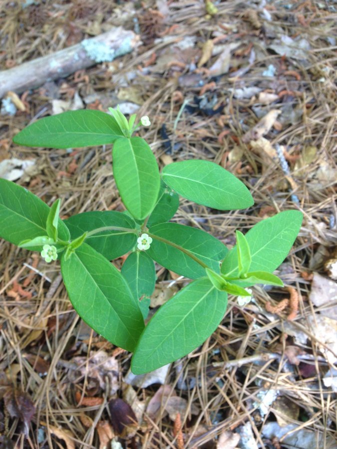 I found this in the backyard under the Pines. Single white flower with five petals. Leaves opposite, smooth, margins entire. Stems are woody. Can’t remember if they’re hairy or not. Haven’t pulled any up to look at roots since they’re few and far between. I can tell you that the deer like them. The closest thing I can come up with is Hemp Dogbane without the cluster of flowers. That’s all I got. Thanks for looking!