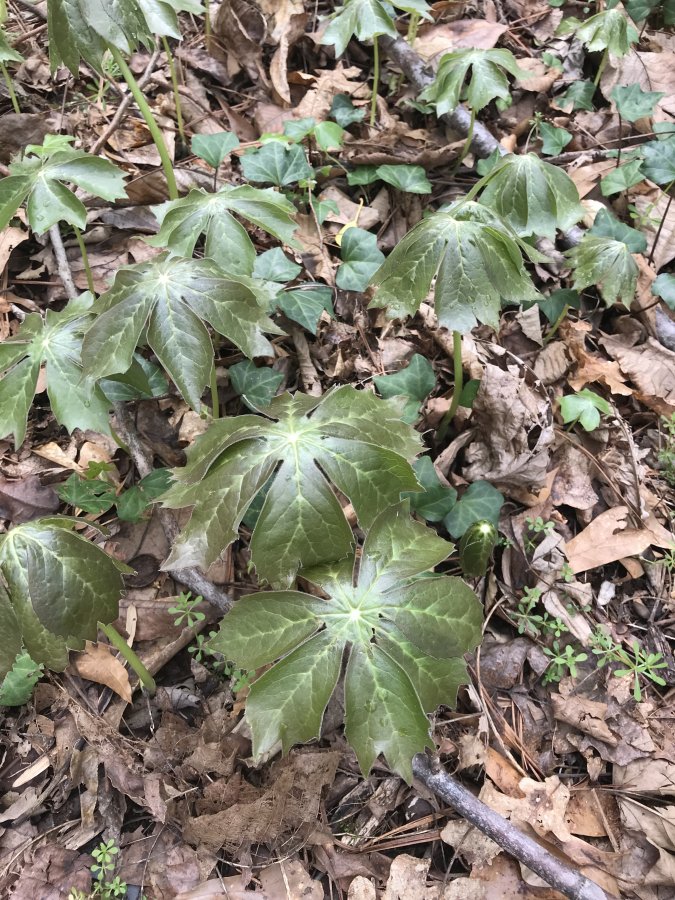 This pops up every spring. WeÕre at the top of a ridge – one side is covered in trillium and the other side is covered in this. I call them umbrella plants