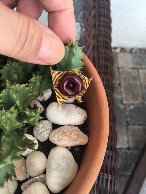 Maybe succulent in the Huernia genus. I can’t be for certain which cultivar yours is, perhaps Huernia zebrina? Check it out and see if you have a match. Best wishes! https://garden.org/plants/view/116946/Lifesaver-Plant-Huernia-zebrina/