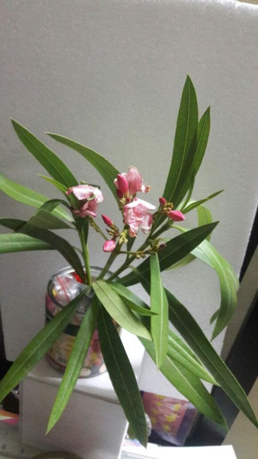Looks like oleander (Nerium). Click on images from link below to enlarge. Best wishes! https://www.google.com/search?q=pink+oleander&tbm=isch&tbo=u&source=univ&sa=X&ved=0ahUKEwjnjIDQ4fbOAhUFGB4KHSbIAUIQ7AkIKg&biw=1867&bih=909#imgrc=_