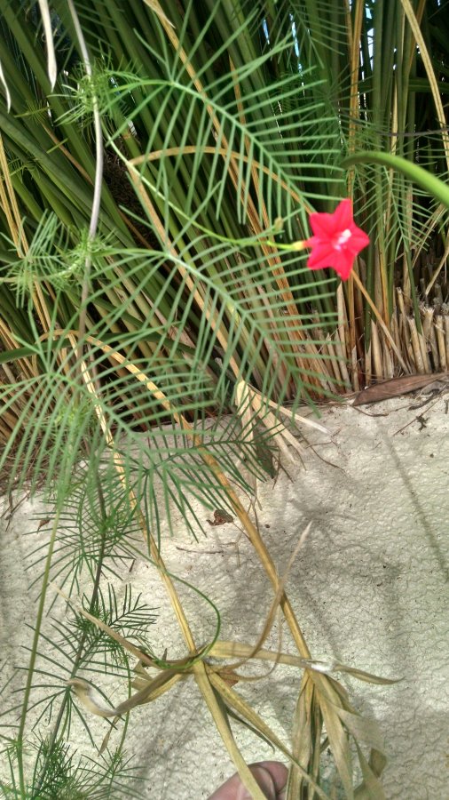 Cypress vine. http://www.walterreeves.com/gardening-q-and-a/cypress-vine/