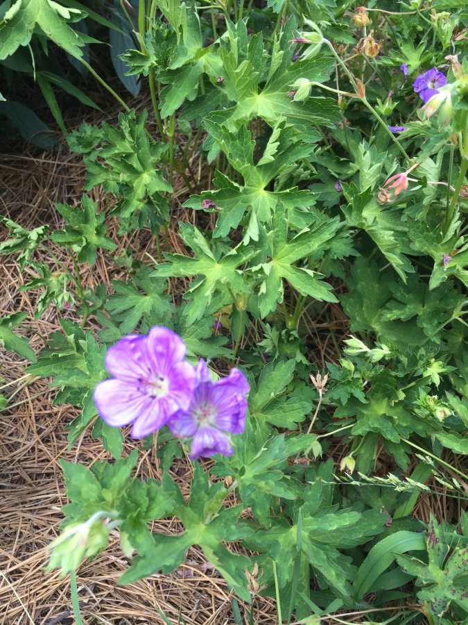This plant can take over a flower bed, with the stems vine-like in their growth. Pretty purple flowers begin in May and June. The leaves have a saw-tooth like edge.