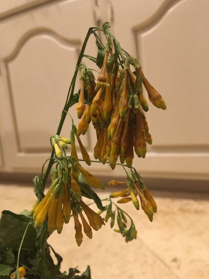 1- I wish I could see more of the plant, also it’s hard to tell with a wilted looking specimen. I’m guessing this could be a cultivar in the Cestrum genus(?). Check out the orange cestrum (C. aurantiacum) from the included link below. If this isn’t a match, please make new post with photos of the whole plant & opened flowers. Best wishes! https://davesgarden.com/guides/pf/go/51480/