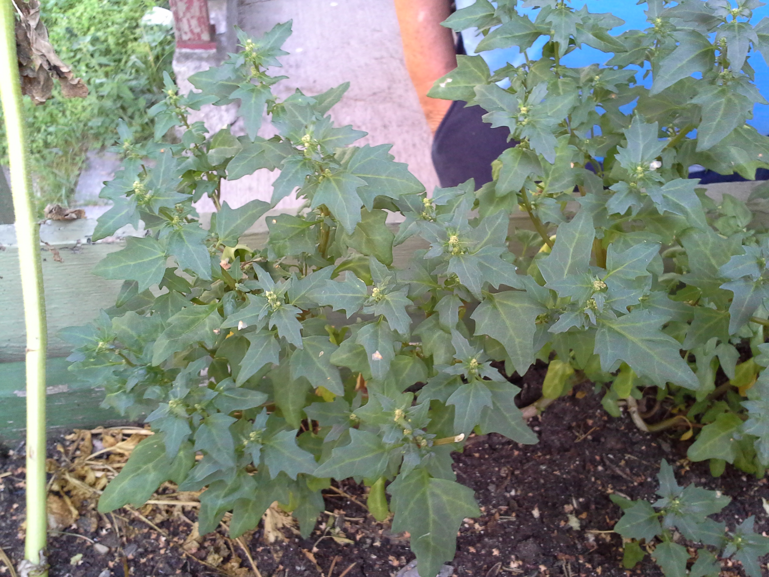 Not being familiar with oak leaf goosefoot I’ll add the following: If the police are as far off with the “tomato” as they are with the “cucumber” then I am probably wrong, but it reminds me of some of the nightshades which are related to tomatoes. Some are poisonous some are not. There are ONLY A FEW pictures here that look a little like yours: https://www.google.com/search?q=deadly+nightshade+pictures&client=firefox-a&hs=H0r&rls=org.mozilla:en-US:official&channel=sb&tbm=isch&tbo=u&source=univ&sa=X&ei=GJ_-U8qzFNL8yQT9ioDABQ&ved=0CB8QsAQ&biw=1024&bih=616 I wouldn’t say that yours is deadly nightshade but could it be black nightshade? Flowers or fruit might be useful.