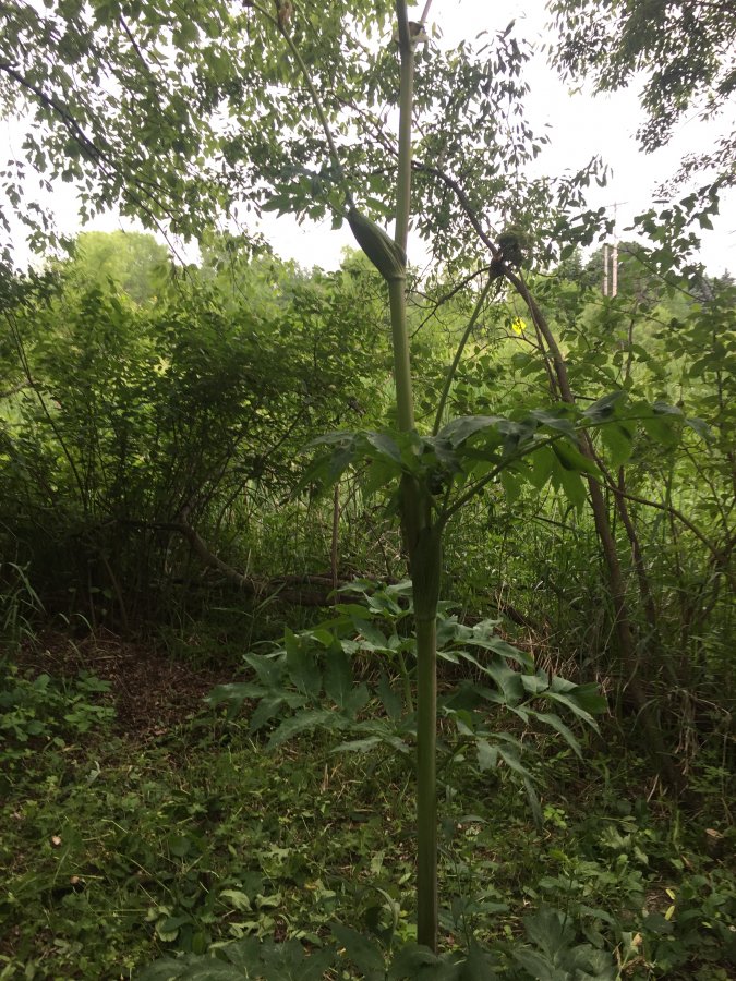 I’m not able to see the flower’s cluster & leaves clearly, I’m guessing this might be something in the Angelica genus. With the purple & smooth looking stem, it could be the purplestem angelica/American angelica (Angelica atropurpurea) (?). The link below with more information., click on images to enlarge. Check it out and see if you have a match. Best wishes! https://www.minnesotawildflowers.info/flower/angelica