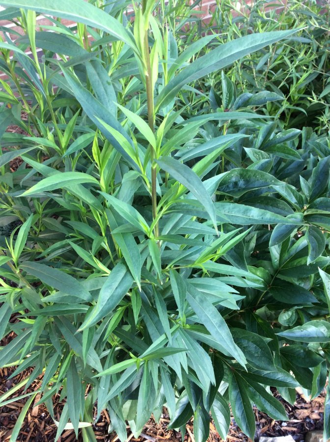With flowers to help narrow down its ID, I could only guess and suggest you check out species of Symphyotrichum genus, Aster genus, and the false aster Boltonia asteroides etc… Link below with images of some the Aster plants leaves. Flowers are needed to confirm its ID. When its blooms and you still don’t know, make new post with picture of flowers. Best wishes! https://www.google.com/search?q=leaves+of+Aster+plants&tbm=isch&tbo=u&source=univ&sa=X&ved=0ahUKEwic1I7HnZzUAhWm7YMKHYgeA2oQ7AkIOw&biw=1366&bih=601#imgrc=hI48KfjsDWBMKM: